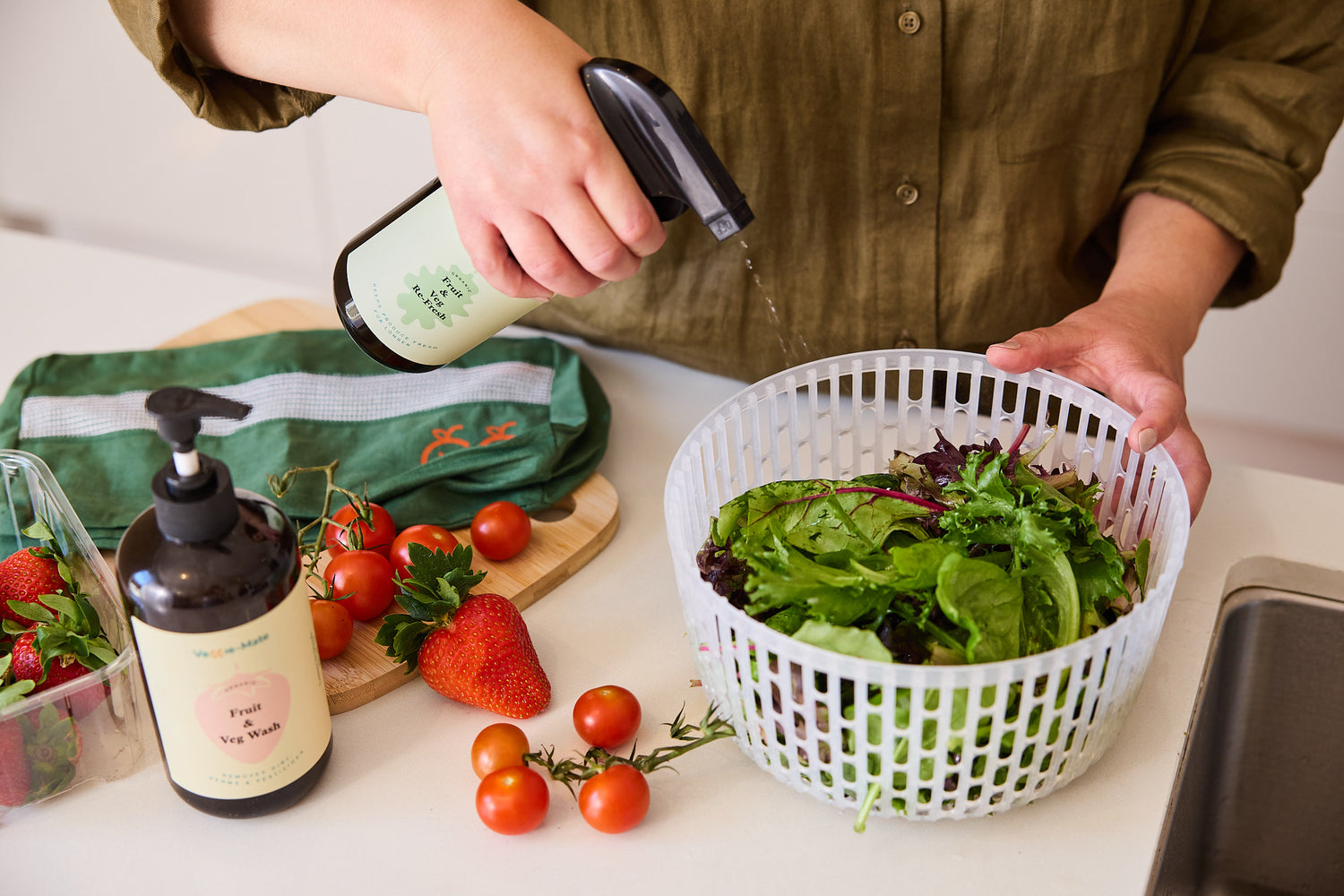 Liberally spraying our Organic Fruit & Veg Re-Fresh will maintain the freshness and extends the shelf life of your produce. It works by removing & inhibiting bacteria & mould that causes rot.